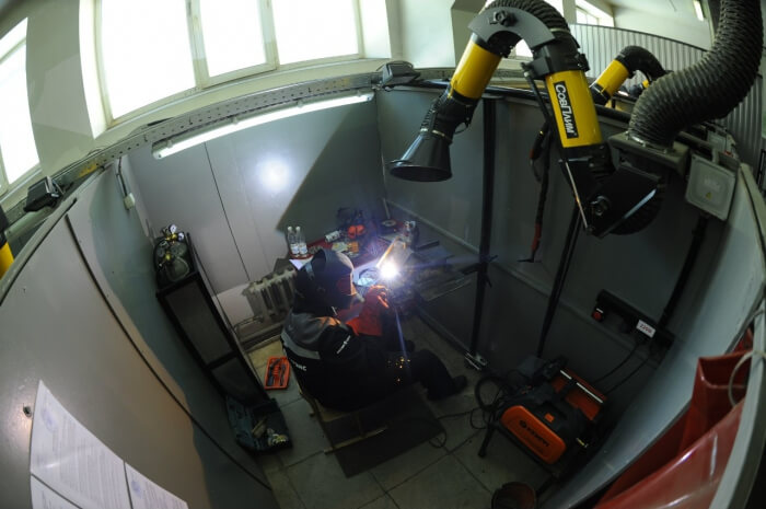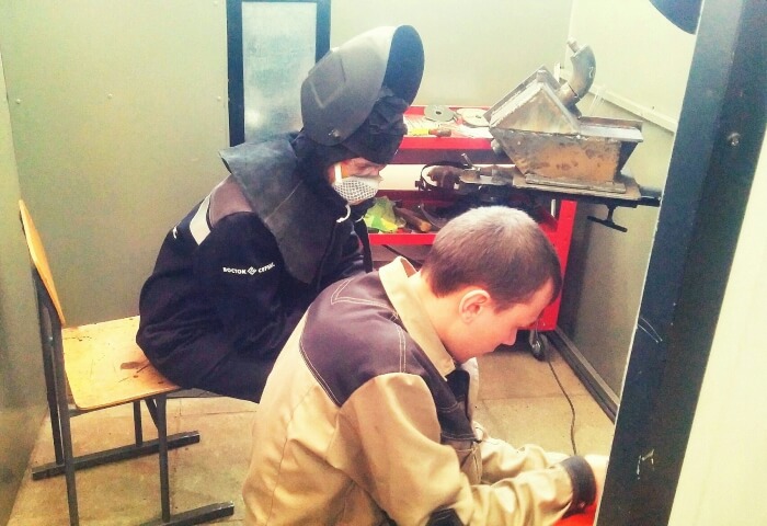 Нас же особенно интересовала та часть, где сварщики демонстрировали свое мастерство. Это происходило в учебном классе Тюменского техникума строительной индустрии и городского хозяйства.