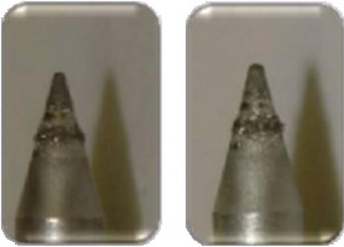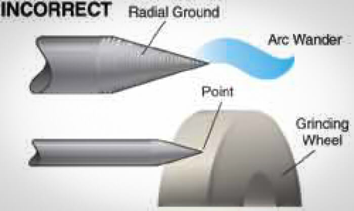 Ниже приведены ошибки при заточке вольфрамового электрода, которые будут влиять на качество формирования шва.