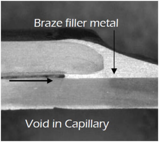 Неправильный нагрев является основной причиной плохо спаянных стыков. Достаточная прочность и пластичность стыка зависит от подачи расплавленного присадочного металла припоя в соединение. Первый стык проявляет прочность снаружи. Несмотря на то, что соединение может быть достаточным при определенных обстоятельствах, высокая вибрация или давление может являться причиной развития трещины.
