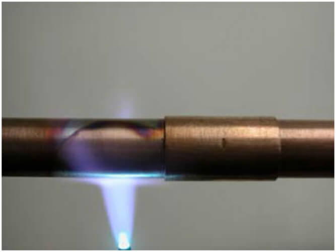 3. Водите горелкой между трубкой и муфтой, чтобы довести обе части до температуры пайки.